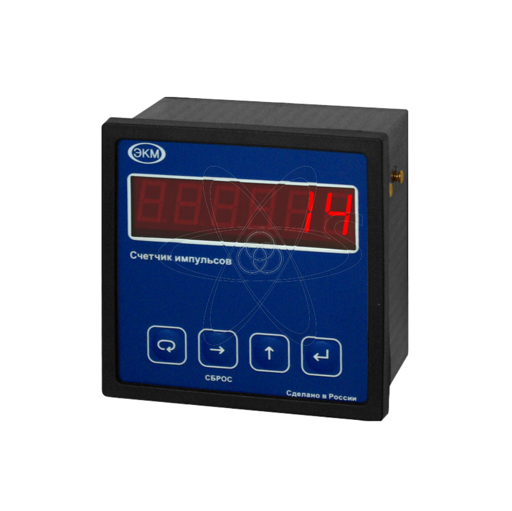 СИМ-05-1 (далее-счетчик) счётчик импульсов  используется для подсчёта длины мерного материала, сортировки продукции,отсчёта партий продукции, количества продукции,суммарного количества изделий и т.п. Счетчик обеспечивает прямой, обратный или реверсивный счёт импульсов. Встроенный таймер позволяет использовать прибор в качестве счётчика наработки времени оборудования. Счётчик монтируется на ровную поверхность (СИМ-05-1-17) или на щит (СИМ-05-1-09). Материал корпуса – ударопрочный полистирол. На передней панели расположены четыре кнопки управления и шестиразрядный индикатор. У счётчика СИМ-05-1-17 снизу корпуса расположены сальники для вывода проводов подключаемых к оборудованию. Для установки прибора необходимо закрепить его с помощью винтов или шурупов в отверстия корпуса. У счётчика СИМ-05-1-09 сзади расположены клеммные блоки для проводов подключаемых к оборудованию. Для установки прибора необходимо вырезать в панели окно размерами 94х94мм, расположить прибор в окне, установить на боковые поверхности прибора кронштейны крепления, входящие в комплект поставки, и винтами прижать устройство к панели. В качестве внешнего устройства могут быть использованы любые (индуктивные,оптические,  ёмкостные или контактные) датчики, имеющие на выходе транзисторные PNP или NPN ключи с открытым коллектором, HTL-выход и сухой контакт.  Работа осуществляется в рабочем режиме или режиме настройки. При подаче питания счётчик находится в рабочем режиме и анализирует входные сигналы, при этом счёт импульсов и управление встроенными реле происходит по алгоритму счёта, заданному заводскими настройками (см. заводские настройки). Все остальные параметры работы счётчика определяются пользователем в меню настроек. Доступ в меню настроек возможен после ввода PIN-кода.