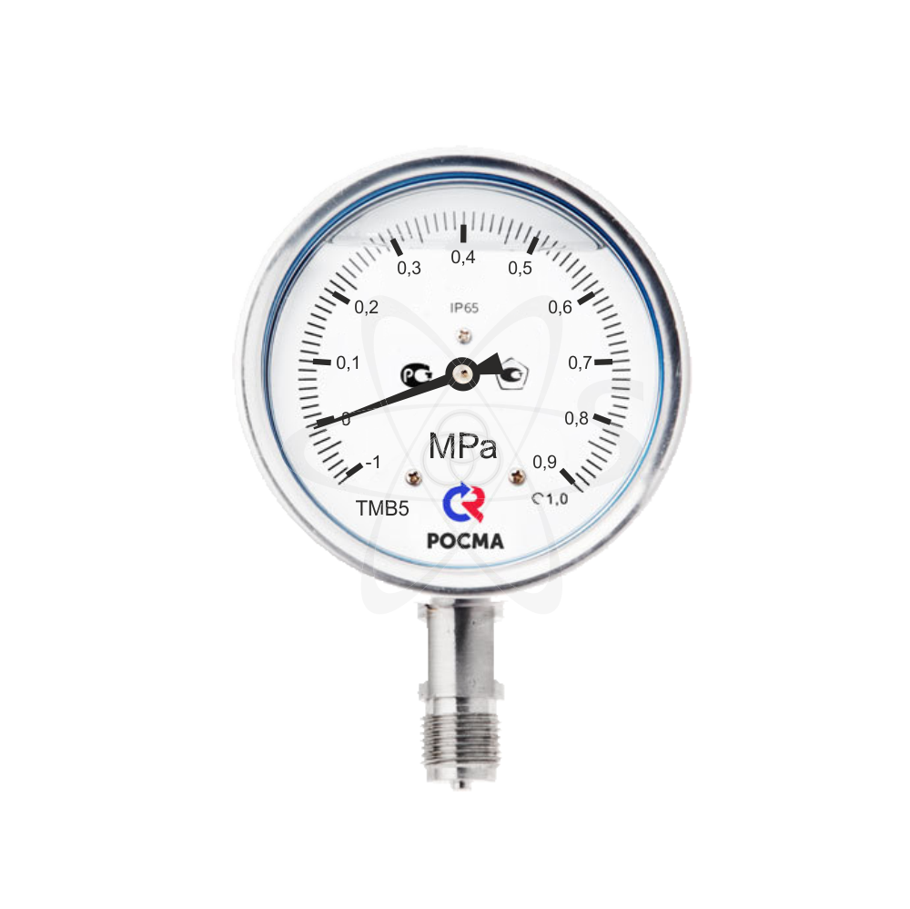 Манометр коррозионностойкий выполнен полностью из нержавеющей стали. Применяется для измерения давления агрессивных жидких и газообразных, не вязких и не кристаллизующихся измеряемых сред с температурой до 200 °C. Эти промышленные манометры могут использоваться в условиях агрессивной окружающей среды, повышенной вибрации и при измерении переменного давления. Повышенная устойчивость к воздействию окружающей среды — степень защиты приборов IP65. Может использоваться в сборе с разделителем сред. При измерении давления с высокими динамическими нагрузками, прибор необходимо заполнить глицерином или силиконом. Область применения: теплоснабжение, водоснабжение, горнодобывающая промышленность, нефтехимическая промышленность, энергетика, машиностроение. Рабочая температура, окружающая среда: −20…+60 °C (глицерин ПК-94), −60…+60 °C (силикон АК-50), −60…+60 °C (без заполнения). Измеряемая среда: −30…+200 °C (без заполнения); −30…+100 °C (с заполнением).