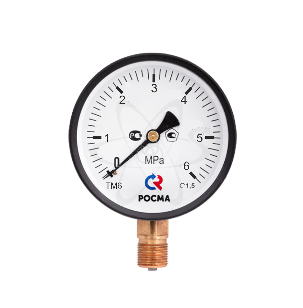 Манометр стандартный используется для измерения избыточного, вакууметрического давления неагресcивных к медным сплавам жидких и газообразных, не вязких и не кристаллизующихся сред с температурой до 150 °C. Корпус манометров в стандартном исполнении выполнен из стали, механизм — из латунного сплава. Принцип действия манометров основан на зависимости деформации чувствительного элемента от измеряемого давления. В качестве чувствительного элемента используется трубка Бурдона. Под воздействием измеряемого давления свободный конец трубки перемещается и с помощью специального механизма вращает стрелку манометра. Область применения: все отрасли промышленности, включая теплоснабжение, водоснабжение, вентиляция, машиностроение.