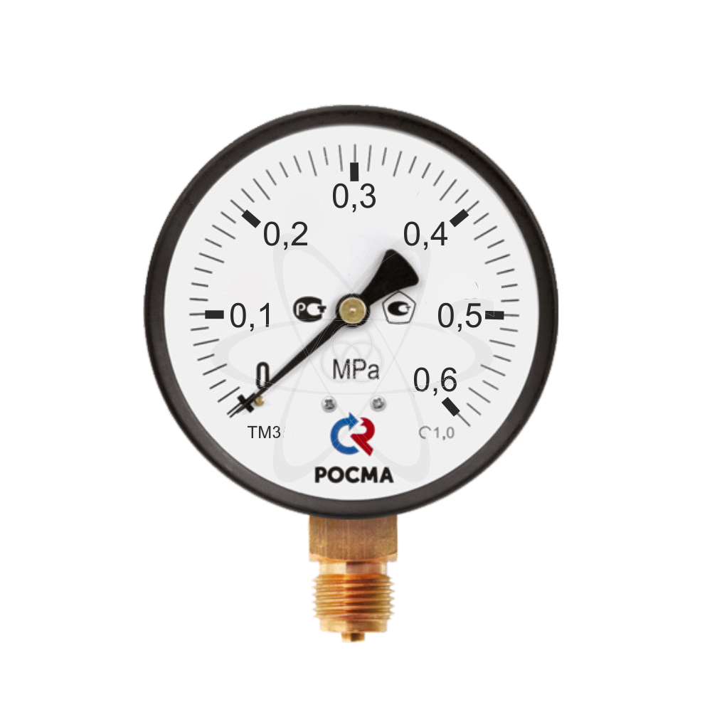 Манометр стандартный используется для измерения избыточного, вакууметрического давления неагресcивных к медным сплавам жидких и газообразных, не вязких и не кристаллизующихся сред с температурой до 150 °C. Корпус манометров в стандартном исполнении выполнен из стали, механизм — из латунного сплава. Принцип действия манометров основан на зависимости деформации чувствительного элемента от измеряемого давления. В качестве чувствительного элемента используется трубка Бурдона. Под воздействием измеряемого давления свободный конец трубки перемещается и с помощью специального механизма вращает стрелку манометра. Область применения: все отрасли промышленности, включая теплоснабжение, водоснабжение, вентиляция, машиностроение.
