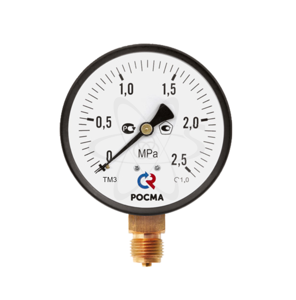 Манометр стандартный используется для измерения избыточного, вакууметрического давления неагресcивных к медным сплавам жидких и газообразных, не вязких и не кристаллизующихся сред с температурой до 150 °C. Корпус манометров в стандартном исполнении выполнен из стали, механизм — из латунного сплава. Принцип действия манометров основан на зависимости деформации чувствительного элемента от измеряемого давления. В качестве чувствительного элемента используется трубка Бурдона. Под воздействием измеряемого давления свободный конец трубки перемещается и с помощью специального механизма вращает стрелку манометра. Область применения: все отрасли промышленности, включая теплоснабжение, водоснабжение, вентиляция, машиностроение.