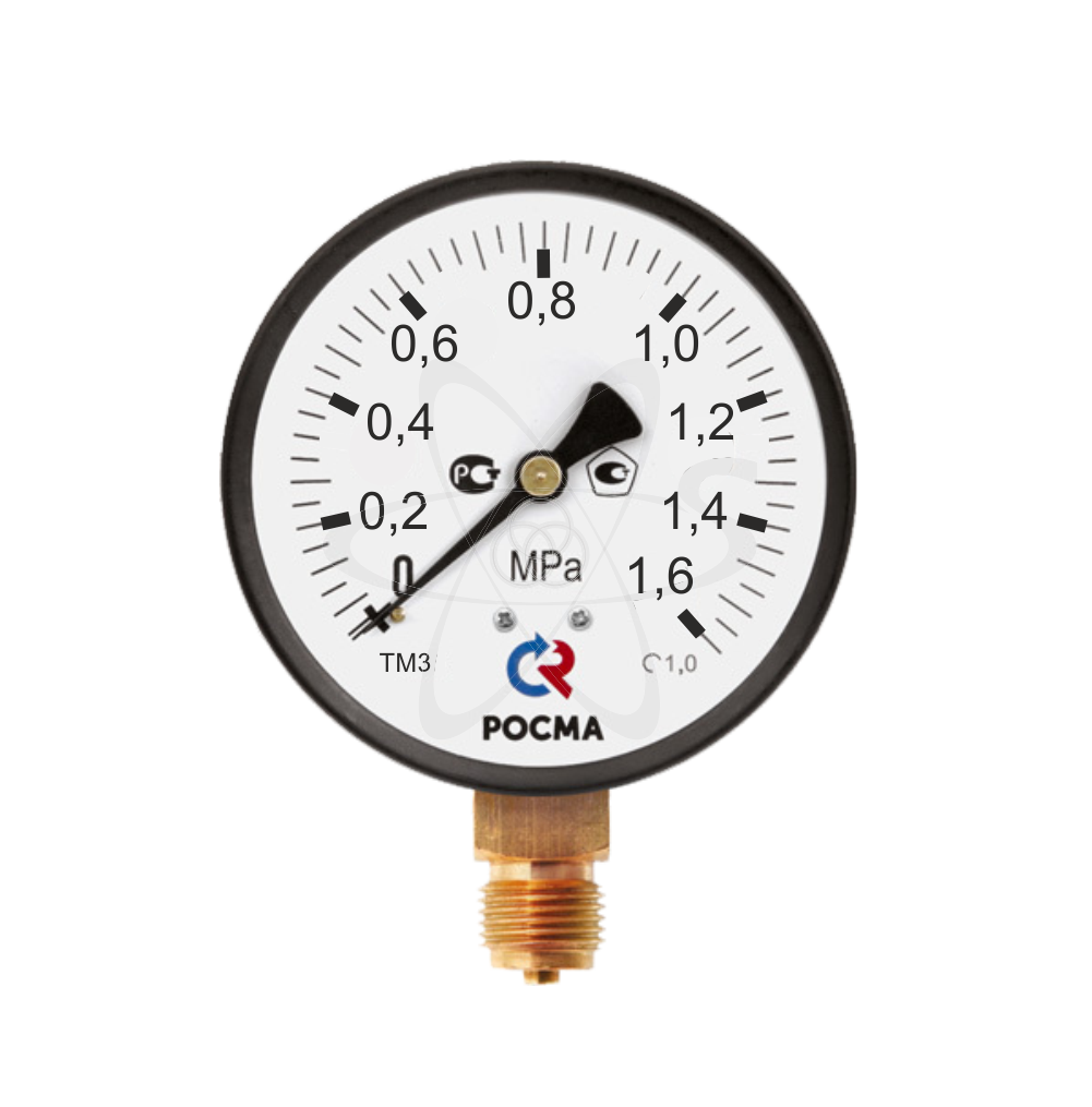 Манометр стандартный используется для измерения избыточного, вакууметрического давления неагресcивных к медным сплавам жидких и газообразных, не вязких и не кристаллизующихся сред с температурой до 150 °C. Корпус манометров в стандартном исполнении выполнен из стали, механизм — из латунного сплава. Принцип действия манометров основан на зависимости деформации чувствительного элемента от измеряемого давления. В качестве чувствительного элемента используется трубка Бурдона. Под воздействием измеряемого давления свободный конец трубки перемещается и с помощью специального механизма вращает стрелку манометра. Область применения: все отрасли промышленности, включая теплоснабжение, водоснабжение, вентиляция, машиностроение.