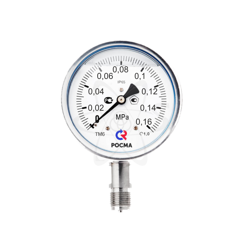 Манометр коррозионностойкий выполнен полностью из нержавеющей стали. Применяется для измерения давления агрессивных жидких и газообразных, не вязких и не кристаллизующихся измеряемых сред с температурой до 200 °C. Эти промышленные манометры могут использоваться в условиях агрессивной окружающей среды, повышенной вибрации и при измерении переменного давления. Повышенная устойчивость к воздействию окружающей среды — степень защиты приборов IP65. Может использоваться в сборе с разделителем сред. При измерении давления с высокими динамическими нагрузками, прибор необходимо заполнить глицерином или силиконом. Область применения: теплоснабжение, водоснабжение, горнодобывающая промышленность, нефтехимическая промышленность, энергетика, машиностроение.