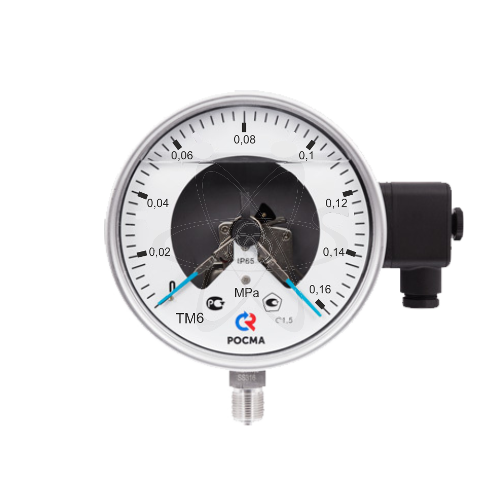 Манометр с электроконтактной приставкой предназначен для управления внешними электрическими цепями в схемах сигнализации, автоматики и блокировки технологических процессов. Электроконтактная приставка может устанавливаться на манометры или мановакуумметры диаметром 100 и 150 мм и классом точности 1,5. Область применения: теплоснабжение, водоснабжение, вентиляция, машиностроение. Манометр с электроконтактной приставкой, более известный как электроконтактный манометр или ЭКМ, предназначен для коммутации электрических цепей в зависимости от величины измеряемого давления. ЭКМ работает следующим образом: электроконтактная группа и стрелка прибора механически связаны и при переходе стрелки за значение уставки (пороговое значение) происходит замыкание или размыкание электрической цепи. ЭКМ производства ЗАО «Росма» изготавливаются на базе общетехнических манометров ТМ-510 и ТМ-610 с диаметрами корпусов 100 мм и 150 мм соответственно. После установки электроконтактной приставки манометр технический становится полноценным ЭКМ.