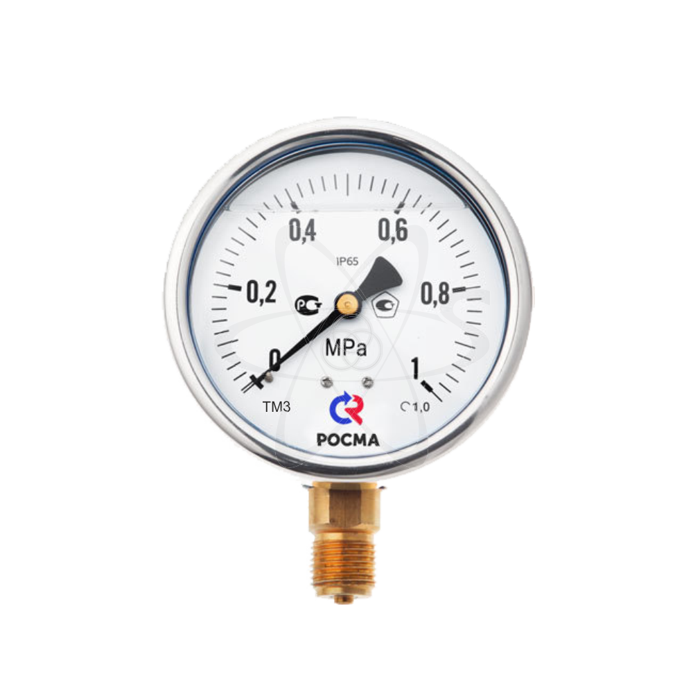 Промышленный виброустойчивый манометр выполнен в корпусе из нержавеющей стали. Применяется для измерения давления неагрессивных жидких и газообразных, не вязких и не кристаллизующихся измеряемых сред с температурой до 150 °C. Этот тип манометра может использоваться в условиях повышенной вибрации и при измерении переменного давления. Повышенная устойчивость к воздействию окружающей среды — степень защиты приборы IP65. При измерении давления с высокими динамическими нагрузками, прибор необходимо заполнить глицерином или силиконом. Манометр с глицерином может эксплуатироваться при температуре окружающей среды до −20 °C, а при наполнении силиконом — до −60 °C. Область применения: теплоснабжение, водоснабжение, горнодобывающая промышленность, энергетика, машиностроение.