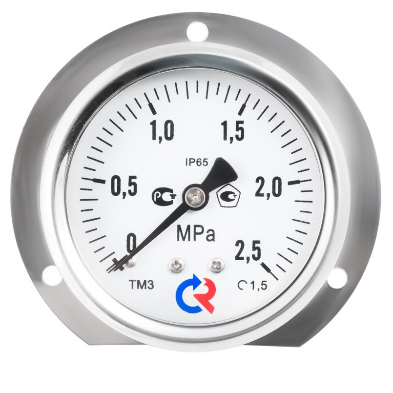 Промышленный виброустойчивый манометр выполнен в корпусе из нержавеющей стали. Применяется для измерения давления неагрессивных жидких и газообразных, не вязких и не кристаллизующихся измеряемых сред с температурой до 150 °C. Этот тип манометра может использоваться в условиях повышенной вибрации и при измерении переменного давления. Повышенная устойчивость к воздействию окружающей среды — степень защиты приборы IP65. При измерении давления с высокими динамическими нагрузками, прибор необходимо заполнить глицерином или силиконом. Манометр с глицерином может эксплуатироваться при температуре окружающей среды до −20 °C, а при наполнении силиконом — до −60 °C. Область применения: теплоснабжение, водоснабжение, горнодобывающая промышленность, энергетика, машиностроение.