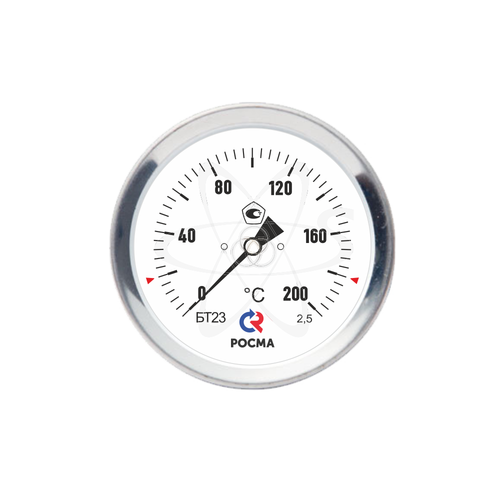 Биметаллический коррозионностойкий термометр со штоком в виде иглы (погружной термометр) предназначен для измерения температуры густых, сыпучих и вязких сред. Принцип действия термометров БТ основан на зависимости деформации чувствительного элемента от измеряемой температуры. В качестве чувствительного элемента используется биметаллическая пружина. Биметаллическая пружина изготавливается из двух прочно соединенных металлических пластин, имеющих различные температурные коэффициенты линейного расширения. При изменении температуры пружина изгибается и вращает стрелку термометра. Один конец пружины закреплен внутри штока, а к другому присоединяется ось стрелки. Корпус и шток прибора изготовлены из нержавеющей стали. Биметаллические термометры игольчатые применяются в сельском хозяйстве, строительстве (в том числе для измерения температуры бетона).