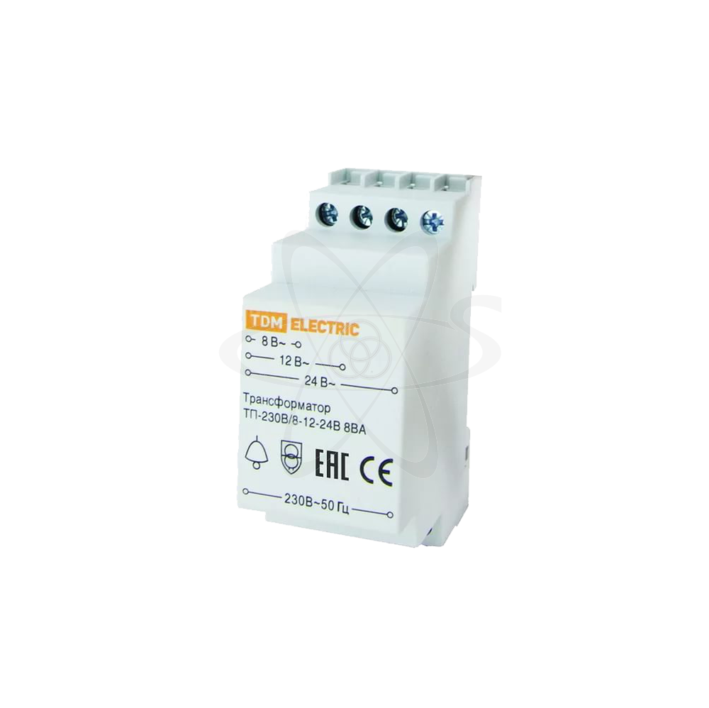- Трансформатор понижающий ТП-230В/8-12-24В 8ВА DIN-рейка TDM