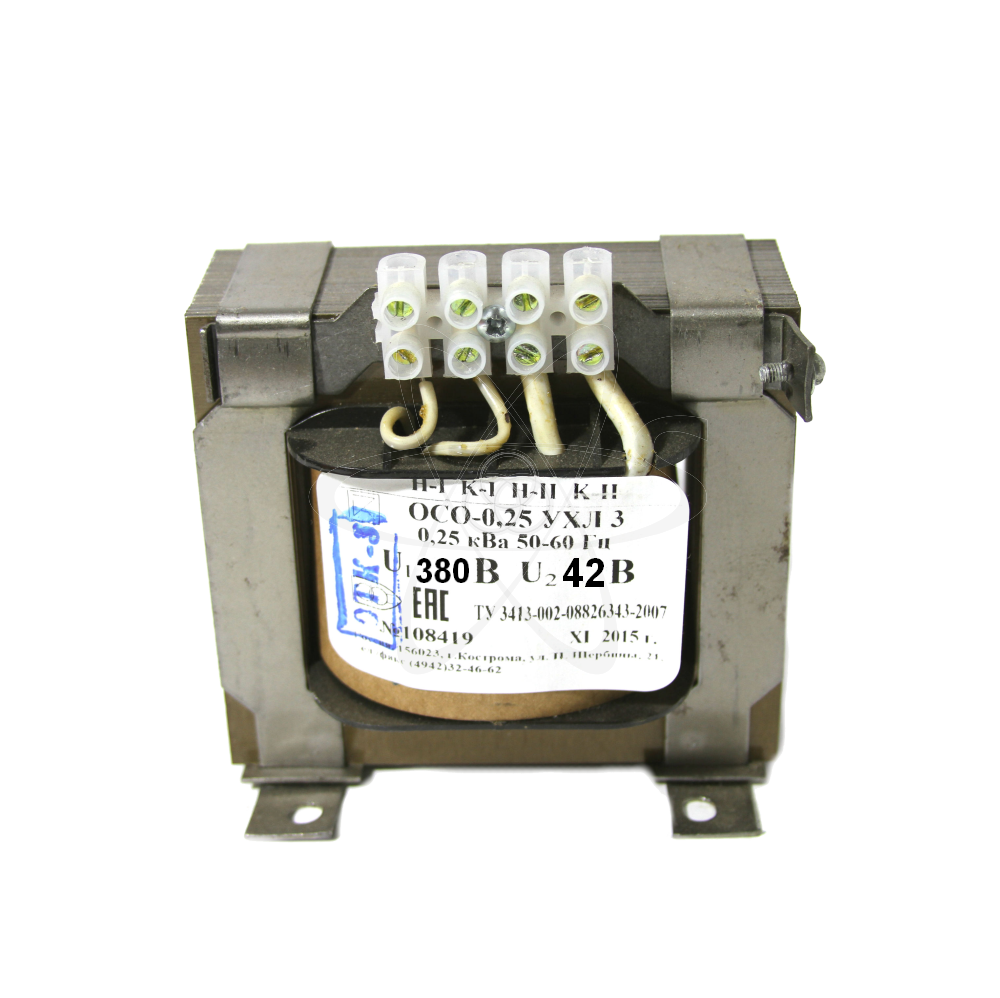 - Трансформатор понижающий ОСО-0,25 кВа 380/42В