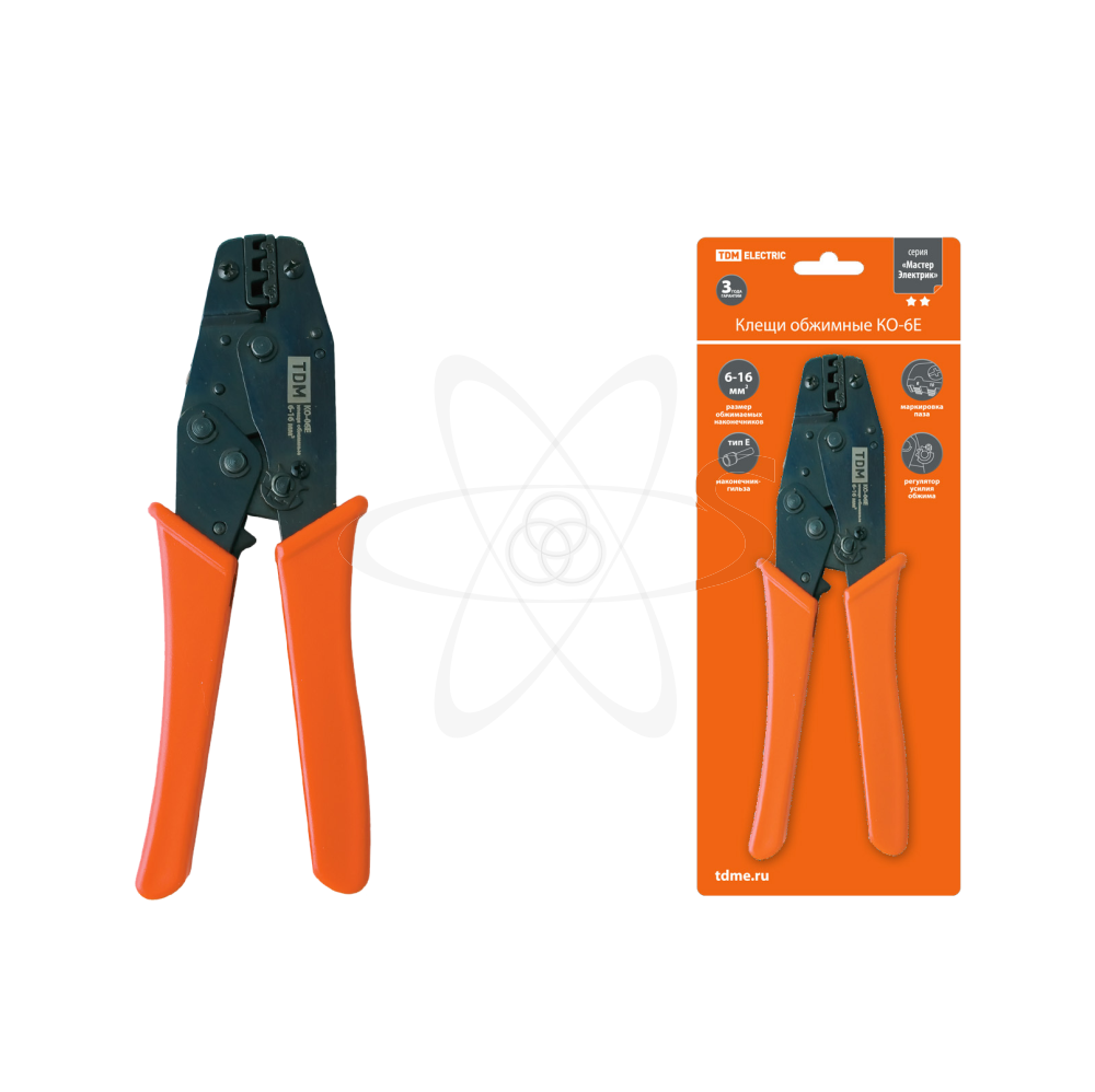 Изделие предназначено для опрессовки основных видов и типоразмеров изолированных наконечников, разъемов и гильз. На рукоятке инструмента есть регулятор, позволяющий установить усилие затяжки хомута. Инструмент автоматически обрезает остатки хомутов – «хвосты». Захват, затяжка и обрезка хомута производится одним нажатием рукоятки.