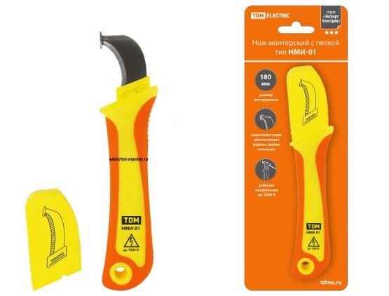 Нож монтерский с пяткой, диэлектрический, НМИ-01 "ЭкспертЭлектрик" TDM: