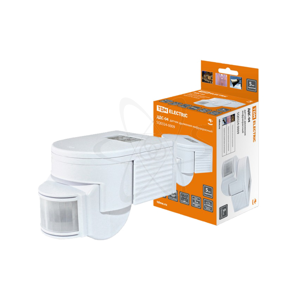 - Датчик движения настенный ДДС-04 1100Вт, 5-480с, 12м, 5+Лк, 180гр, IP44, TDM