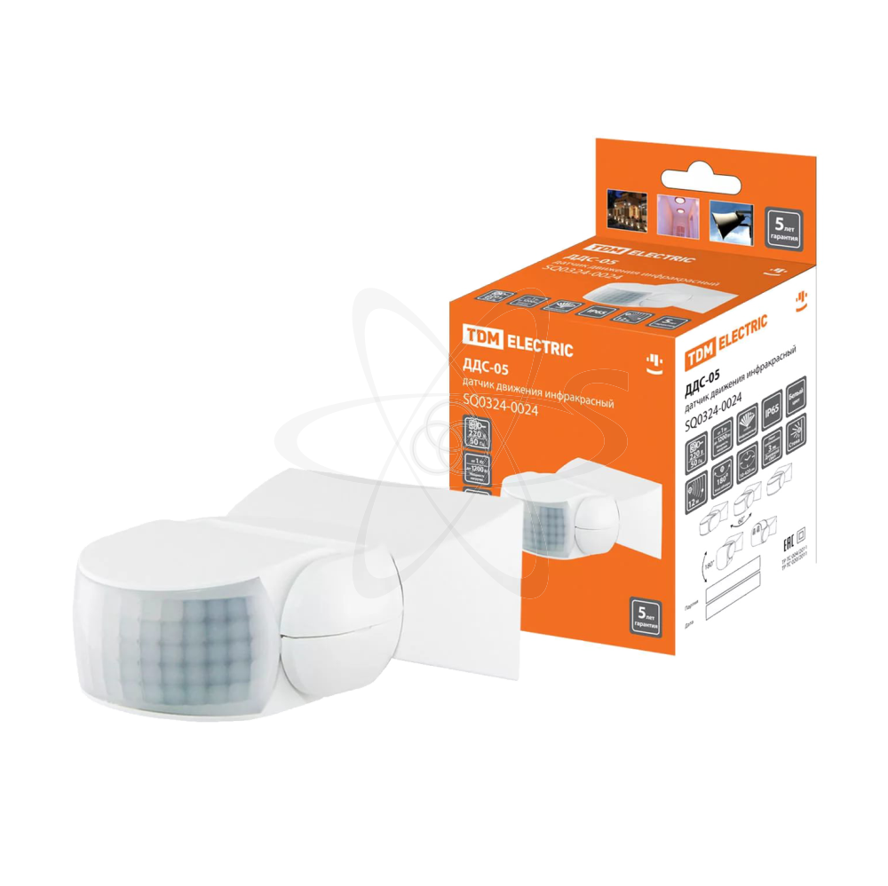 - Датчик движения настенный ДДС-05 1200Вт, 10-420с, 12м, 3+Лк, 180гр, IP65, TDM