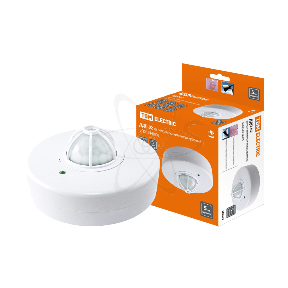 Потолочный датчик движения TDM ДДП-02 SQ0324-0005 обеспечивает полностью автоматическое управление освещением. Внутри корпуса из пластика, не поддерживающего горение, находятся 3 инфракрасных датчика, увеличивающих угол обзора (160 градусов сбоку, 360 градусов сверху) и дальность обнаружения объекта. Обладает широким диапазоном рабочих температур: от -20 до +45 градусов. Степень защиты IP33, что гарантирует достаточную защиту изделия от дождя. Порог срабатывания может регулироваться от 5 лк до уровня солнечного света. Габариты: 118х60х118 мм.