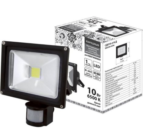 - Прожектор светодиодный СДО20-2-Н-Д (с датчиком) 20Вт, 6500К, черный, Народный