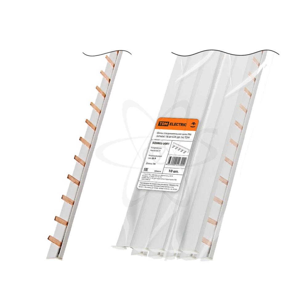 Распределительные шины предназначены для удобного и безопасного соединения групп модульной аппаратуры: автоматических выключателей ВА, автоматические выключатели дифференциаль¬ного тока АВДТ, дифференциальных автоматов АД, дифференциальных выключателей ВД, выключателей нагрузки ВН и прочих модульных устройств. Проводящая часть шин изготовлена из высококачественной меди. Изолирующий профиль шин изготовлен из самозатухающего пластика. В наличии полный перечень шин двух типов (PIN и FORK) для подключения 1, 2, 3, 4 полюсных устройств на токи до 100 А.