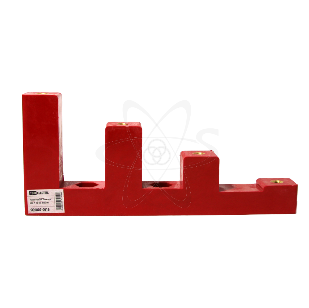 Изделие предназначено для крепления токоведущих шин внутри силовых шка¬фов или сборок, а также для неподвижной фиксации и изоляции частей, находящихся под напряжением, от корпуса и панелей сборки.Корпус изоляторы выполнен из диэлектрического пластика, армированного стекловолокном (BMC – Bulk-Mould Composite).В «тело» изоляторов армированы латунные гайки для крепления к металлоконструкциям корпуса и к шине.Возможность крепления шин большой длины с одинаковым межфазным расстоянием без дополнительного выравнивания.Материал корпуса изолятора не подвержен старению, обладает удельной прочностью, сравнимой со сталью, негорюч и ударопрочен.