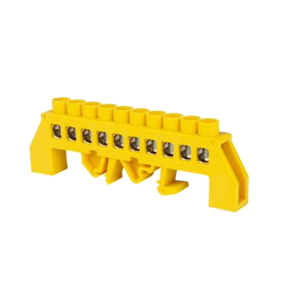 Шина "PE" "земля" в желтом изоляторе на DIN-рейку 8x12мм 10 групп TDM: