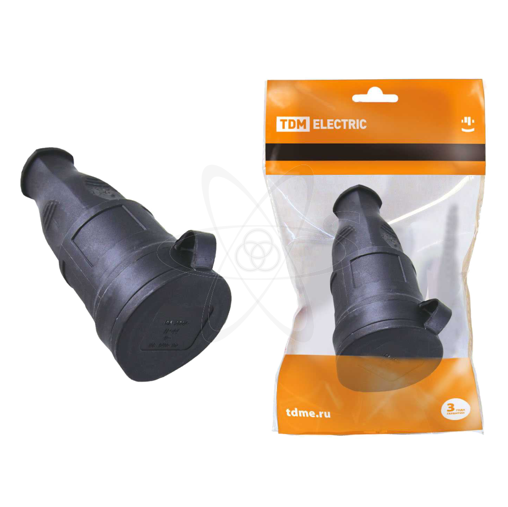 Переносная розетка с заглушкой каучук TDM 2Р+РЕ 16А 250В IP44 SQ0612-0002 предназначена для подсоединения различного силового оборудования к однофазной электрической сети напряжением до 250 В и частотой 50 Гц, номинальным током 16 А. Модель применяется на строительных площадках, в промышленности и производстве. Модель мобильна, ее легко можно перемещать с одного рабочего места на другое, и пользователю не нужно решать проблему с передвижением тяжелого оборудования к месту подключения. Каучуковый корпус защищает контакты розетки от пыли, влаги и масел, обладает высокими прочностными характеристиками (к высоким и низким температурам, химическому воздействию, износу). Степень защиты корпуса - IP44, размеры - 118х52 мм. Эксплуатационный срок службы - 5 лет.