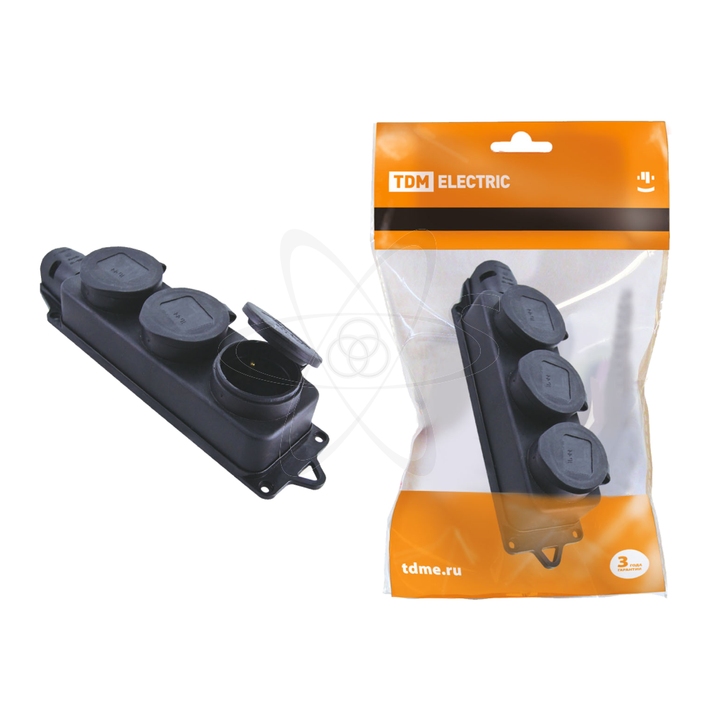 Трехместная розетка с заглушками каучук TDM 2Р+РЕ 16А 250В IP44 SQ0612-0008 выполнена из высококачественного каучука черного цвета, который обеспечивает всей конструкции устройства высокую ударопрочность, износостойкость, устойчивость к различным химическим воздействиям и защищает контакты розетки от пыли, влаги и масел. Есть возможность подключения до трех единиц силового оборудования, с контактами - 2Р+РЕ. Применяется на строительных площадках, в производственных цехах, в быту. Нормальная работа устройства гарантирована при температуре от -40 до +500С. Габаритные размеры розетки: 248х68 мм. Срок службы не менее 5 лет.