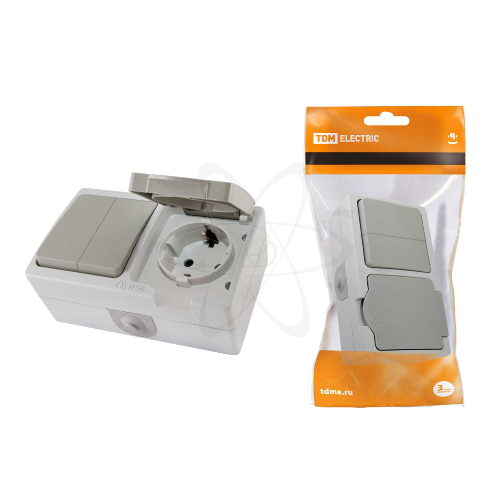 Блок комбинированный горизонтальль.2 кл+розетка 2П+З с з/ш IP54 "Вуокса":