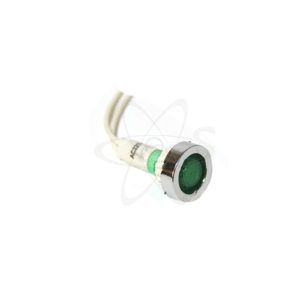 Лампа NH диам. 9мм c металлич. ободком и проводком зеленая 230В
