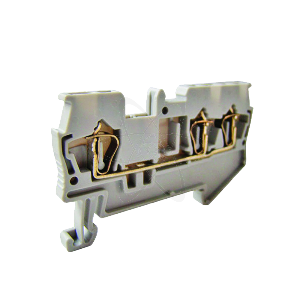 Изделие предназначено для безопасного и компактного подключения фазных, нулевых и защитных проводников различного сечения.Для создания упорядоченных систем распределения в шкафах.Корпус выполнен из негорючего полиамида (PA66), устойчивого к температурным воздействиям и действию агрессивных сред (масла, смазочные материалы и т.д.)Прижимная пружина выполнена из нержавеющей стали, покрытой бихроматом никеля; контактная группа выполнена из латуни с гальваническим покрытием.Надежная фиксация провода любого типа пружинным зажимом из нержавеющей стали с автоматической регулировкой усилия прижима в зависимости от сечения проводника.Пружинная конструкция позволяет использовать клеммы в условиях повышенной вибрации, а качество зажима никоим образом не зависит от режимов работы нагрузки.Простая двухступенчатая безвинтовая система крепления проводника делает монтаж быстрым и удобным.Возможность использования перемычек освобождает место для подключения кабеля и позволяет экономить место в шкафу.