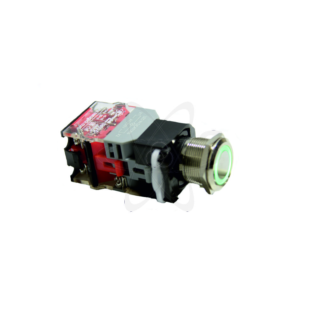 - Кнопка HBS1-DY-11E/S (1NO+1NC) с подсветкой зеленая (G) 10А 230В.