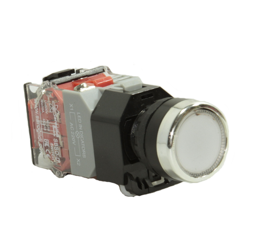 Кнопка с подсветкой белая 230В 1з+1р.Быстросъемная головка позволяет производить замену светофильтров и ламп.Удобство монтажа контактного модуля, который присоединяется к блоку кнопки за счет фиксации пластмассовым флажком.Упрощенное конструктивное исполнение позволяет осуществлять быстрый монтаж и демонтаж изделия на щит или на панель.Светосигнальные индикаторы предназначены для индикации состояния электрических цепей.