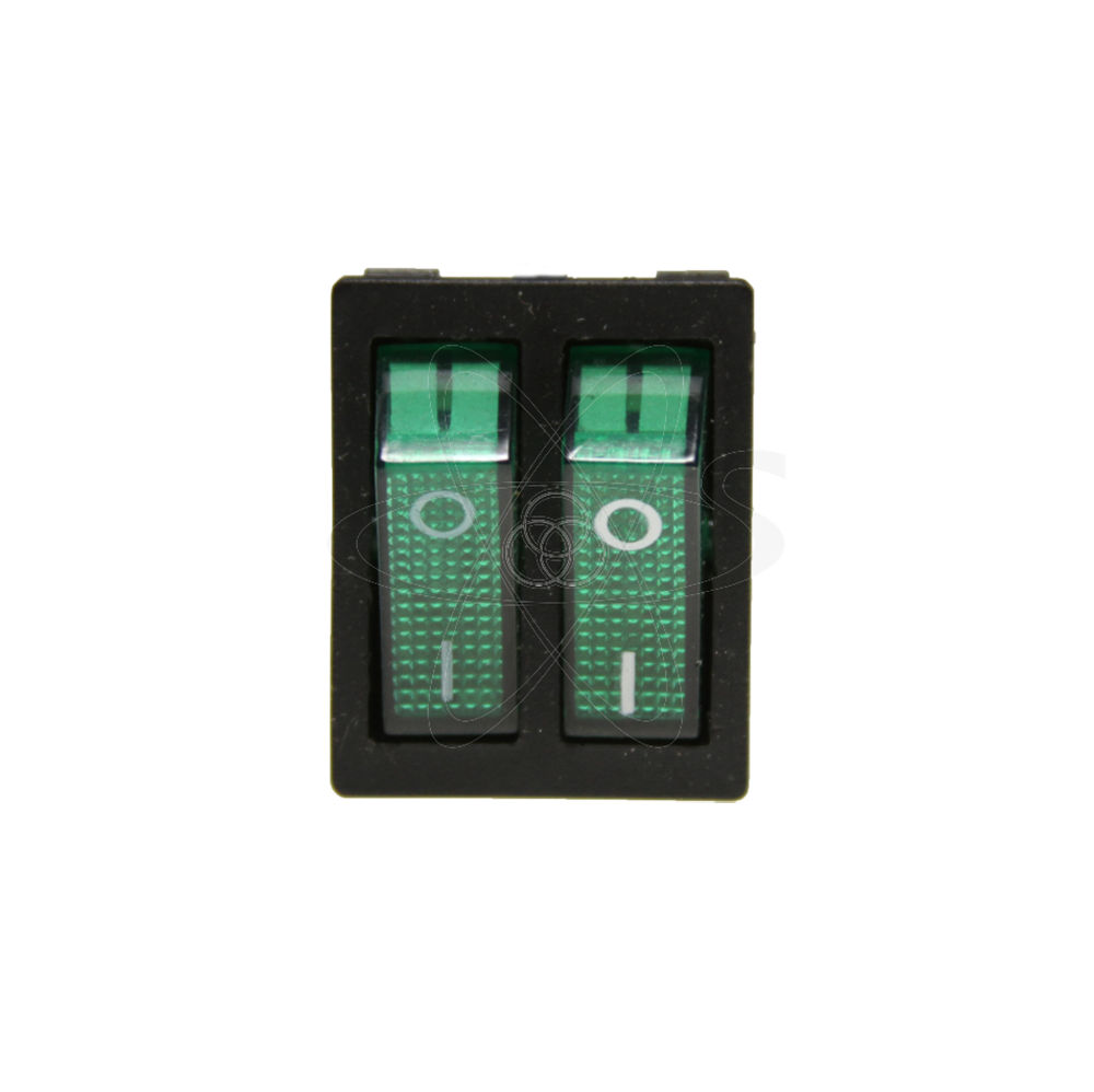 - Тумблер клавишный KCD8 двойной 10А 6 ножек зеленый