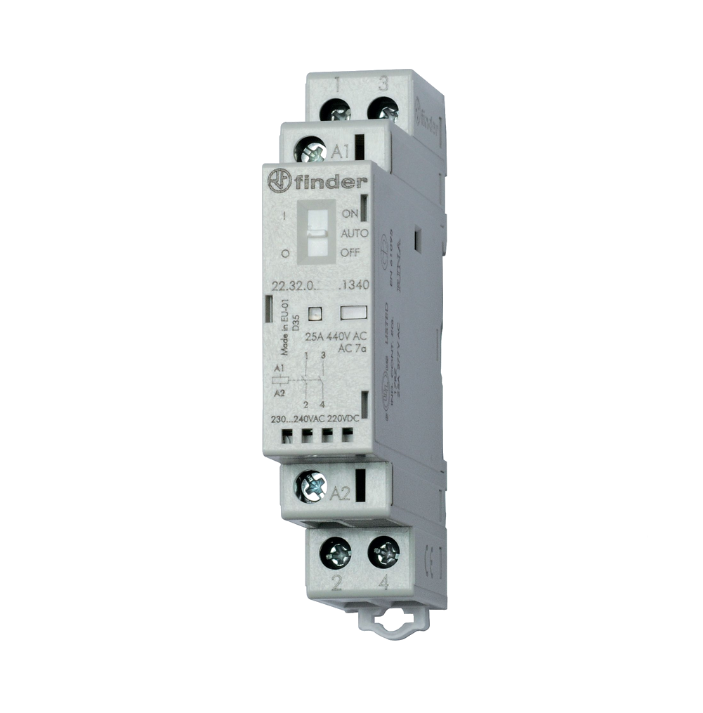 - Модульный контактор; 2NO 25А; контакты AgNi; катушка 24В АС/DC; ширина 17.5мм; степень защиты IP20