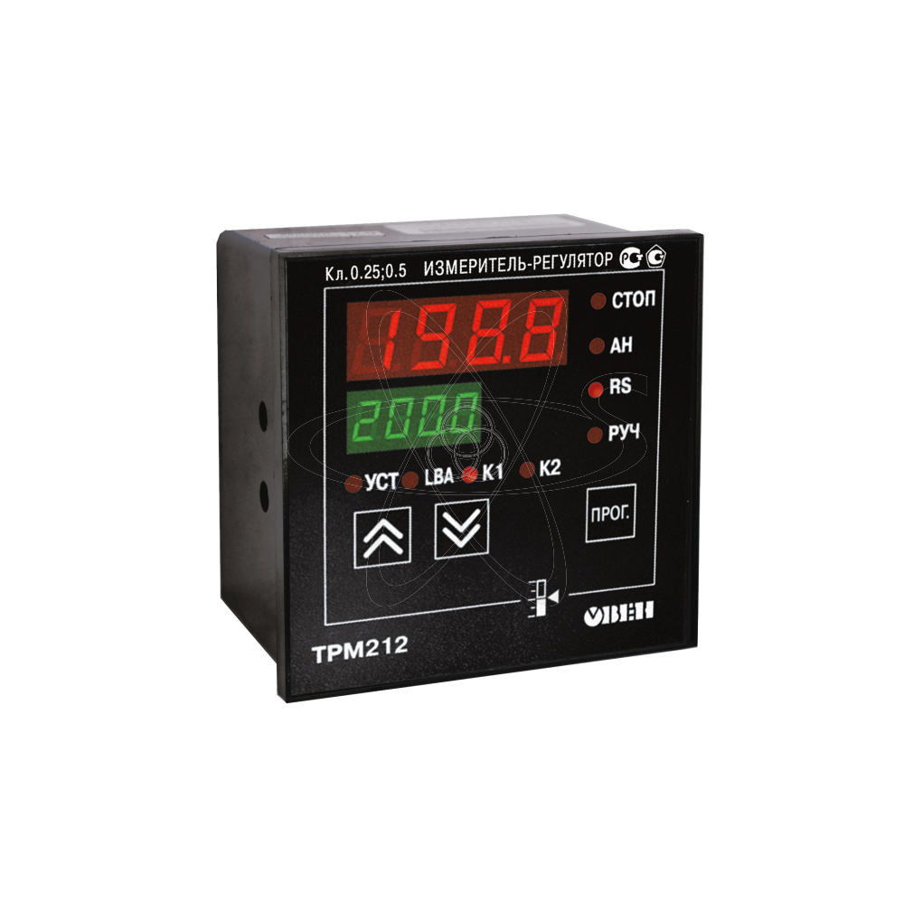 ОВЕН ТРМ212 является аналогом ТРМ12 с дополнительным входом и интерфейсом RS-485. Рекомендуется для управления задвижками с электроприводом и клапанами: в системах ГВС, парового и газового отопления; в теплообменных аппаратах (пастеризаторах); при подаче охлаждающей жидкости в контурах водяных охладителей; при регулировании соотношения воздух/газ, а также в другом технологическом оборудовании, где используются запорно-регулирующие либо трехходовые клапаны и задвижки с электроприводом. Класс точности 0,25 /0,5. Прибор выпускается в четырех типах корпусов:щитовых Щ1, Щ2 , настенном Н и новом эргономичном корпусе Н2. Основные функции ТРМ212: 2 универсальных входа для подключения широкого спектра датчиков давления,температуры, расхода, уровня, влажности, и т. д. Также имеет возможность работы с датчиками, имеющими квадратичную характеристику. Вычисление суммы,разности,отношения и корня из разности двух измеряемых величин.Измерение и регулирование расхода по перепаду давления на стандартных сужающих устройствах (диафрагма, сопло и трубка Вентури) без применения диф. манометра. ПИД-регулирование вычисленной либо измеренной величины с использованием: электропривода запорно-регулирующего (КЗР) или трехходового клапана, задвижки с аналоговым входом 4…20 мА или 0…10 В в ручном,автоматическом и дистанционном режимах. Автоматическая настройка ПИД-регулятора по современному алгоритму, оптимизация выхода на уставку. Подключение датчика положения задвижки ко входу 2. График коррекции уставки регулятора по величине, измеренной на втором входе. Сигнализация об обрыве в цепи регулирования (LBA).Дистанционный пуск и остановка ПИД-регулятора. Встроенный интерфейс RS'485 (протокол ОВЕН, Modbus ASCI/RTU). Уровни защиты настроек для разных групп специалистов.Конфигурирование на ПК или с передней панели прибора.