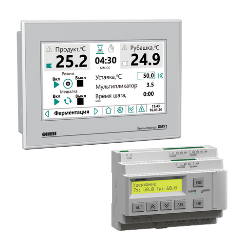 Комплект панели с питанием 24 В Цветной 7’ сенсорный TFT экран и регулятора на 230 В с алгоритмами пастеризатора (КМУ1-230.ВДП.Р + КМУ1-24.ВДП.П)