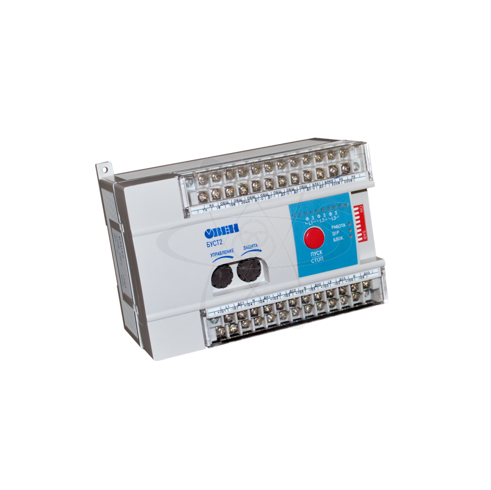 Блок управления тиристорами и симисторами БУСТ2 (далее-БУСТ2) предназначен для управления тиристорами или симисторами , работающими с активно индуктивной или активной нагрузкой: инфракрасными лампами,нагревательными элементами печей, двигателями,трансформаторами и др. Автоматическое регулирование мощности активной нагрузки с помощью сигналов управления 0...1 В,0...10 В, 0...5 мА,0(4)...20 мА , поступающих от регулятора. Управление нагрузкой, включенной «ТРЕУГОЛЬНИКОМ» и «ЗВЕЗДОЙ» . Управление активной и активно-индуктивной нагрузкой (cos φ>0,4). Управление мощными тиристорами и симисторами с токами управления до 1,5 А. Ручное регулирование мощности с помощью встроенного потенциометра. Два метода управления тиристорами или симисторами , в зависимости от инерционности нагрузки и уровня помех в сети. Защита силовых симисторов или тиристоров при возникновении аварийных ситуаций: превышения номинального тока в нагрузке или короткого замыкания. Светодиодная индикация уровня мощности (10 уровней от 0 до 100 %). Возможность внешней блокировки управления нагрузкой. Работа с одно-, двух- и трехфазной нагрузкой.Мгновенный выход на заданный уровень мощности для управления низко-инерционными нагрузками Переключение режимов - плавный выход на заданный уровень мощности для предотвращения резких перегрузок питающей сети или защиты нагревателей. .