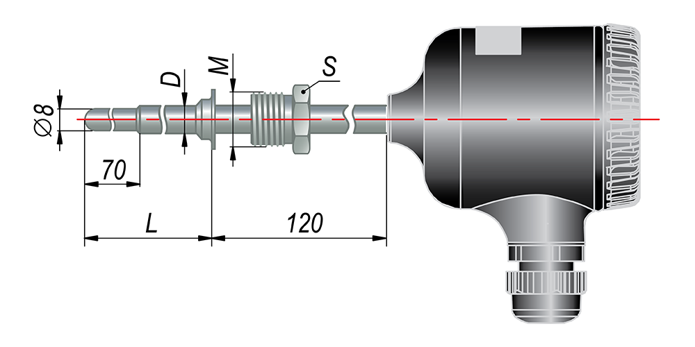 • Диаметр погружной части: Ø=10 мм(погружной части)
