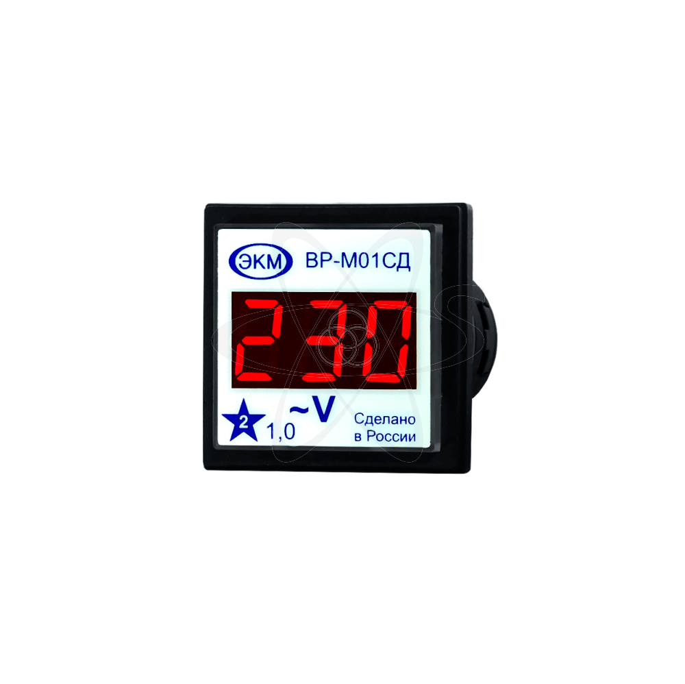 ВР-М01-29СД (далее-вольтметр) цифровой промышленный вольтметр предназначен для технологического контроля величины напряжения в электрических цепях переменного тока,как и сферах ЖКХ ,так и в промышленных зонах, , бытовом секторе, про-чих объектах народного хозяйства.Также может применяться в составе систем автоматизированного контроля и управления технологическими процессами в качестве дополнительного или основного индикатора на стационарных и передвижных объектах. Является средством контроля. Периодической поверке не подлежит. Вольтметр выпускаются в унифицированном пластмассовом корпусе щитового исполнения с задним присоединением проводов питания и коммутируемых электрических цепей. Монтируется вольтметр на ровную поверхность в отверстие диаметром 22мм или в щит, с обратной стороны фиксируется гайкой. Клемная конструкция обеспечивает надёжный зажим проводов сечением до 2,5мм2. На передней панели прибора расположен цифровой индикатор отображающий величину напряжения. Светодиодный индикатор, обеспечивает считывание информации при любой освещённости. Вольтметр не требует дополнительного питания, подключается непосредственно в измеряемую цепь. Для исключения ложных показаний при напряжении менее 15В на индикаторе появляется сообщение "L0". При напряжении более 450 (300) - "Hi".