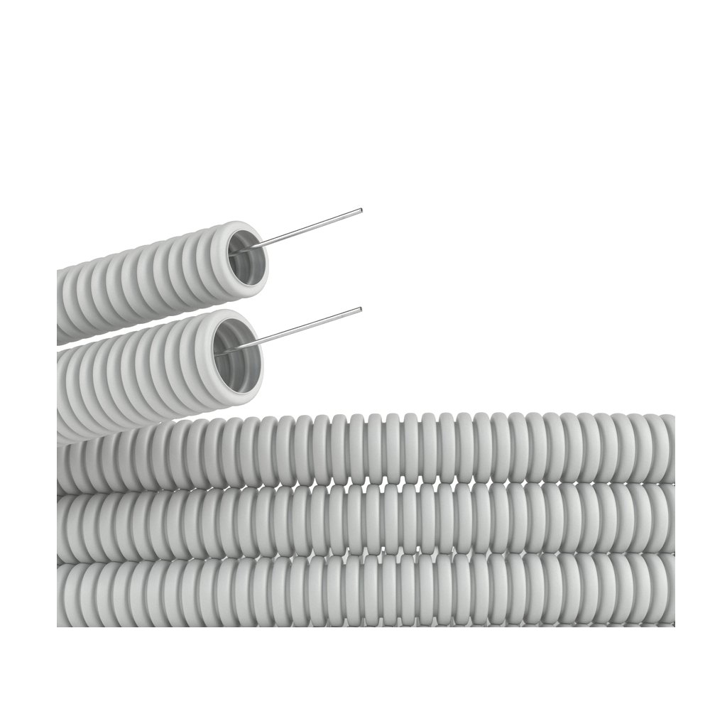 Гибкая гофрированная труба из ПВХ надежно защищает кабель от механических воздействий. Используется для прокладки электрического, компьютерного телефонного кабелей. Труба этого типа прокладывается в стенных штробах, в пустотах фальш-потолков и фальш-стен, в стяжке полов или под фальш-полами. Проволочная протяжка облегчает прокладку кабеля в трубе.