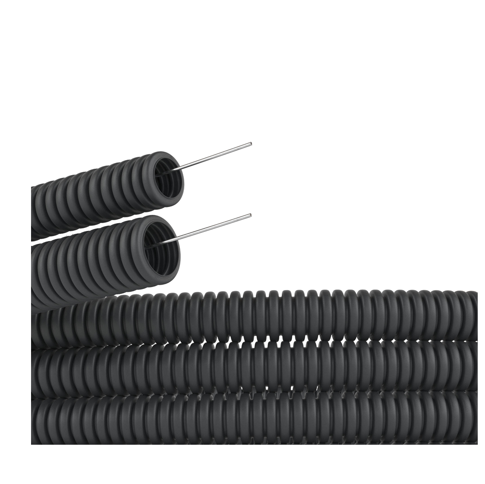 - Труба ПНД гибкая гофр. д.50мм, лёгкая с протяжкой, 15м, цвет чёрный