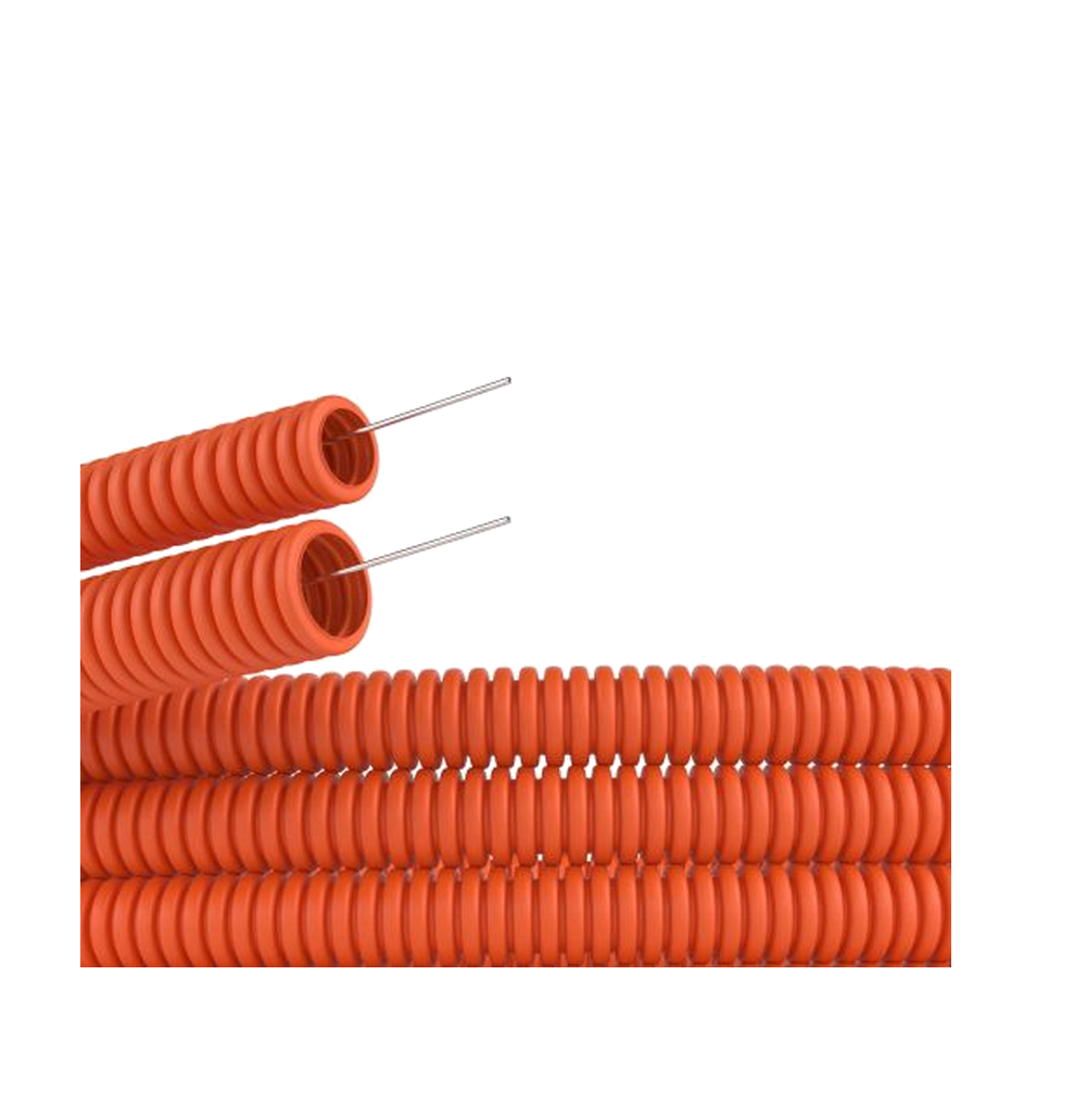 Гибкая гофрированная труба из полиэтилена низкого давления, цвет оранжевый. Обладает устойчивостью к воздействию влаги, устойчивостью к старению, повышенной эластичностью и ударной прочностью.