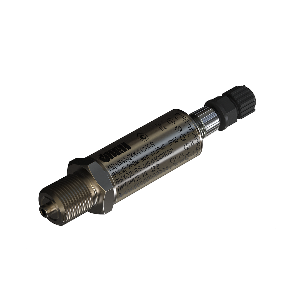 Малогабаритный цифровой датчик ПД100И представляет собой преобразователь давления с цельносварным, залитым компаундом корпусом с сенсором типа КНК (кремний на кремнии) с мембраной из нержавеющей стали с выходным сигналом RS-485/Modbus RTU. Отличительной особенностью преобразователя давления ПД100И с протоколом Modbus RTU является возможность прямого подключения к контроллерам и шлюзам.