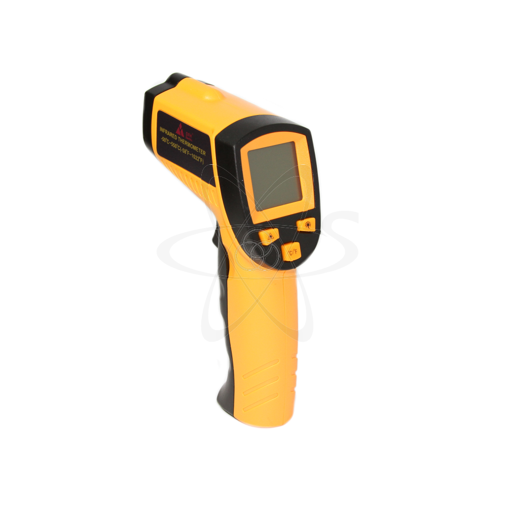 Дистанционный измеритель температуры предназначен для измерения температур поверхности различных предметов. Может использоваться без прямого контакта с горячими, опасными или трудно досягаемыми объектами для быстрого и безопасного проведения измерений. Пирометр состоит из объектива, усилителя сигнала, процессорной части и ЖК-дисплея. Объектив собирает ИК-энергию, излучаемую объектом и фокусирует ее на сенсоре. Затем сенсор превращает данную энергию в электрический сигнал. После усиления и преобразования сигнала результат измерения в цифровом виде отображается на дисплее. Комплект поставки: прибор, батарея, инструкция по эксплуатации.
