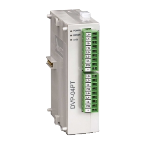 Температурные модули DVP04-PT/TC – это модули расширения для ПЛК Delta серии S. Они служат для преобразования сигнала с термосопротивлений (PT100,PT1000,Ni100,Ni1000) или термопар (J, K, R, S, T) в дискретный сигнал 14-бит.