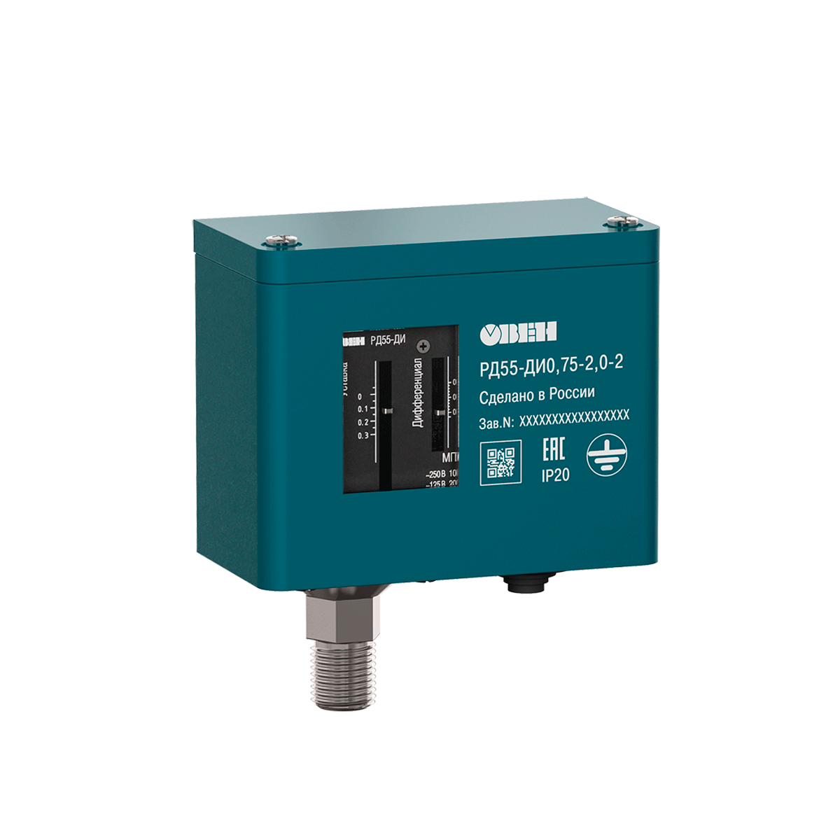 РД55-ДИ представляет собой механическое реле избыточного давления. Реле предназначено для управления аварийной сигнализацией путем переключения электрической цепи при падении давления в системе. Порог срабатывания реле и дифференциал настраивается пользователем.